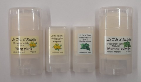 Ingrédients : Huile de coco BIO, bicarbonate de soude, cire d’abeille, fécule de maïs, huiles essentielles : palmarosa BIO et menthe poivrée (*Géraniol, Limonene, Linalool, Citral (Géranial, Néral), Farnésol, Citronellol) ou Ylang-ylang BIO (*Citral (Géranial + Néral), Benzyl Benzoate, Benzyl, Salicylate, Farnésol, Geraniol, Linalool, Eugenol, Benzyl Alcohol)