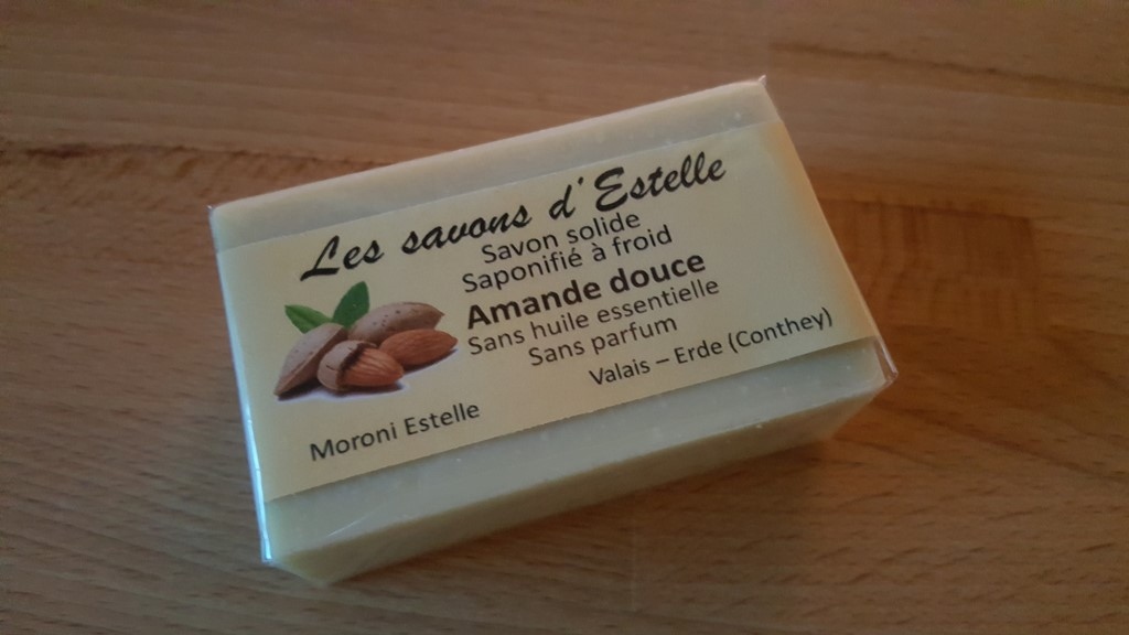 Ingrédients: Huile d'olive vierge, huile de coco BIO (coprah), beurre de cacao BIO saponifiés à froid, eau alpine, glycérine issue de la saponification, huile d'amande douce BIO, beurre de karité BIO, argile blanche